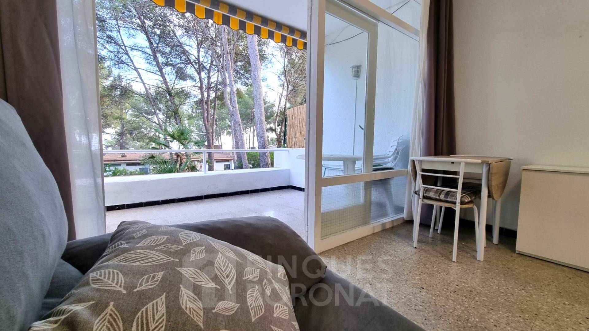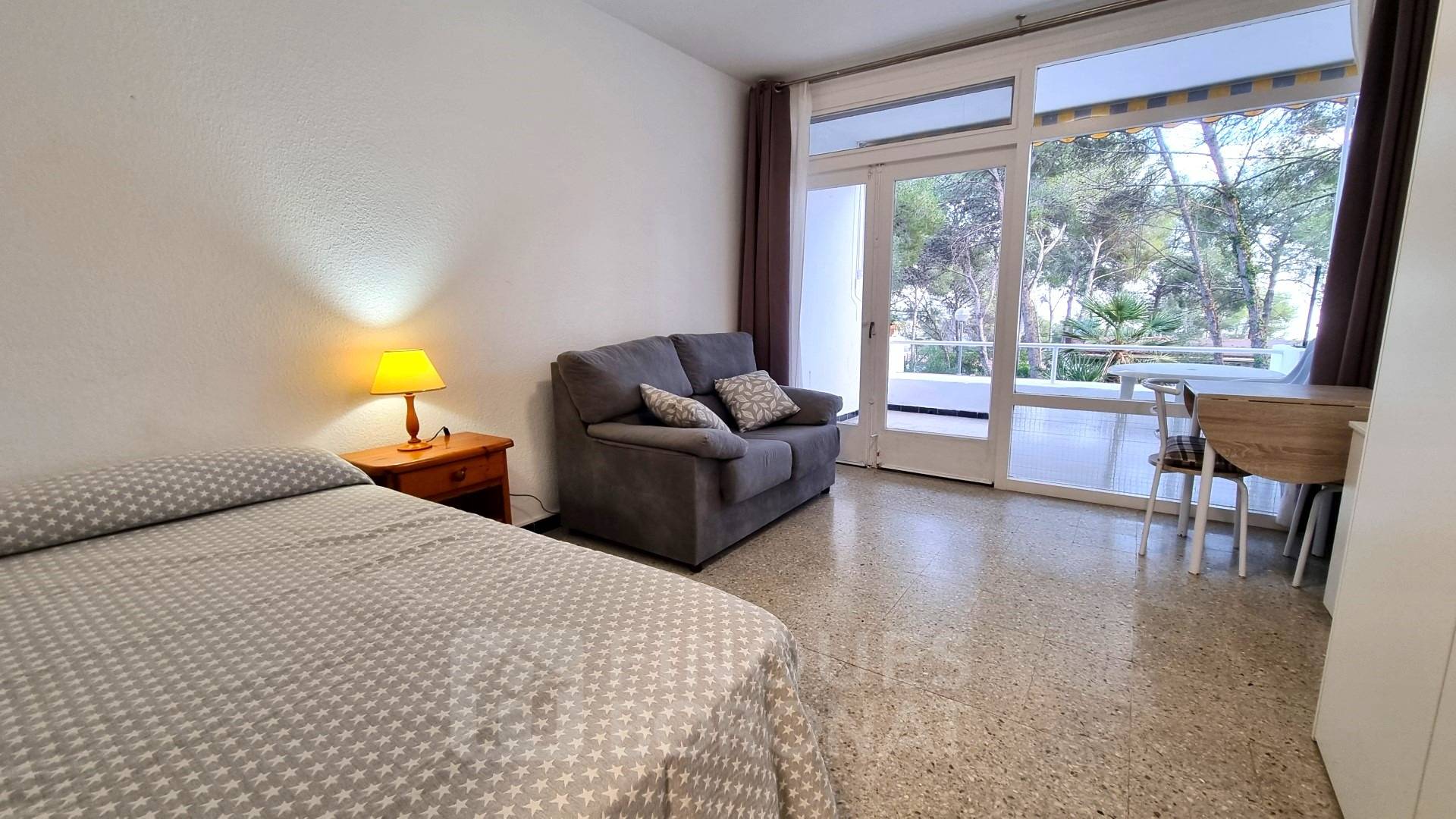 Acollidor estudi en un sol ambient (sense dormitori independent), cuina, bany i terrassa amplia.