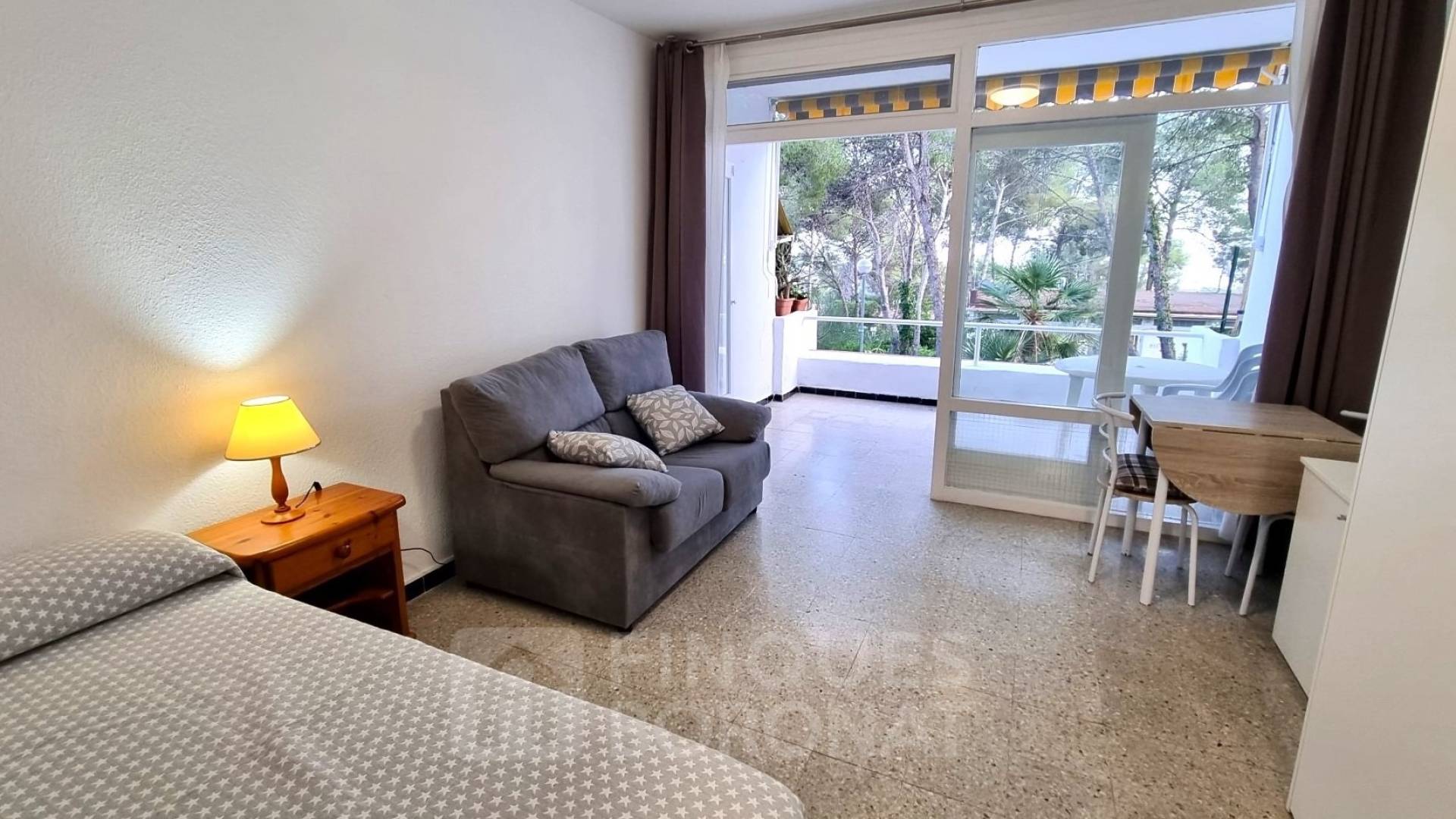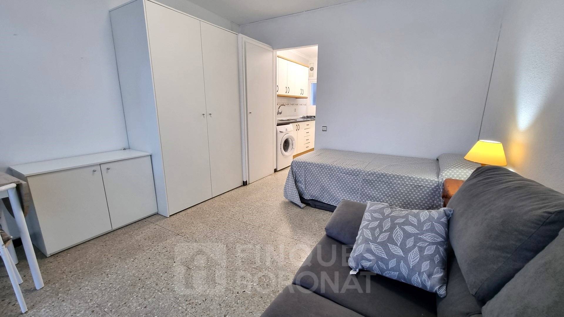 Acollidor estudi en un sol ambient (sense dormitori independent), cuina, bany i terrassa amplia.